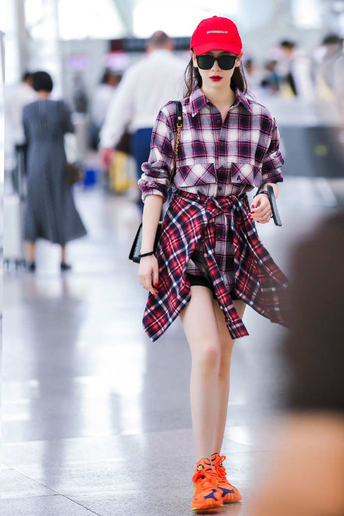 这个我最喜欢,两件格子衬衫加一个短裤的搭配,一件衬衫撸起袖子露出小臂,另外一件当裙摆系在腰间,搭配一双运动鞋和一个棒球帽,真是眼前一亮过目不忘,瘦瘦的小姐姐完全可以借鉴哦