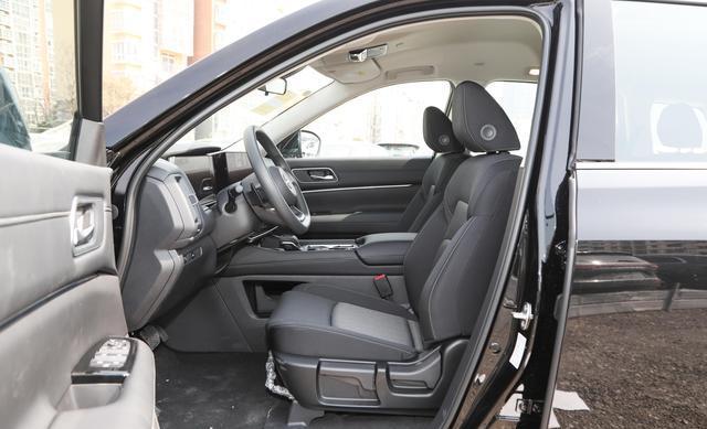 进入车内,探陆秉承日产豪华居家风,中控台、门板缝线皮质包覆,彰显高级。双12.3英寸联屏与三幅平底方向盘设计现代,科技感十足。但实体按键和旋钮手感待提升,操作稍逊竞品。
