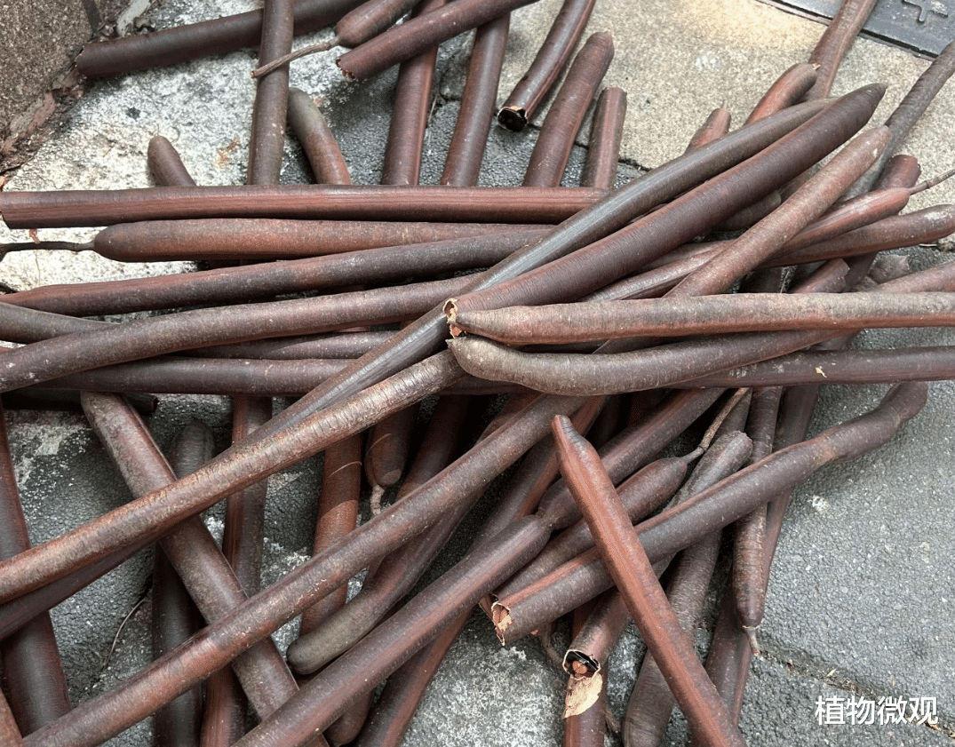 赫赫有名的泰国皇室,其成员肩章装饰图案用的皇花,就是金链花,这个金链花其实就是腊肠树的花。因此腊肠树在泰国,也是一种较为常见的树,腊肠树的果期在秋季,果实细长,呈圆柱形,长可达60-80厘米,成熟之后黑褐色。里面有扁圆形的种子,黑色的,像一片一片的糖果。