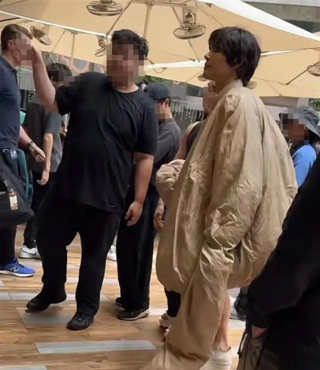 目击者拍摄的画面堪称魔幻现实主义教科书:卡其色棉袄像条巨型蚕蛹裹住全身,拖地衣袖在瓷砖上摩擦出刺啦声响,凌乱长发间透出犀利眼神——这哪里是国际机场,分明是《东邪西毒》片场穿越来的丐帮九袋长老。