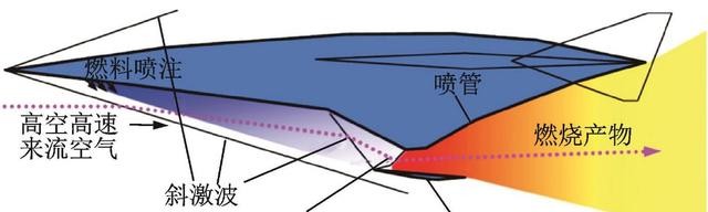 这款发动机最牛的就是它的工作原理:当超高音速气流撞击到斜震波发射器后,其产生的斜震波会与椎体流出的燃料在燃烧室汇聚,发生“爆炸燃烧”。