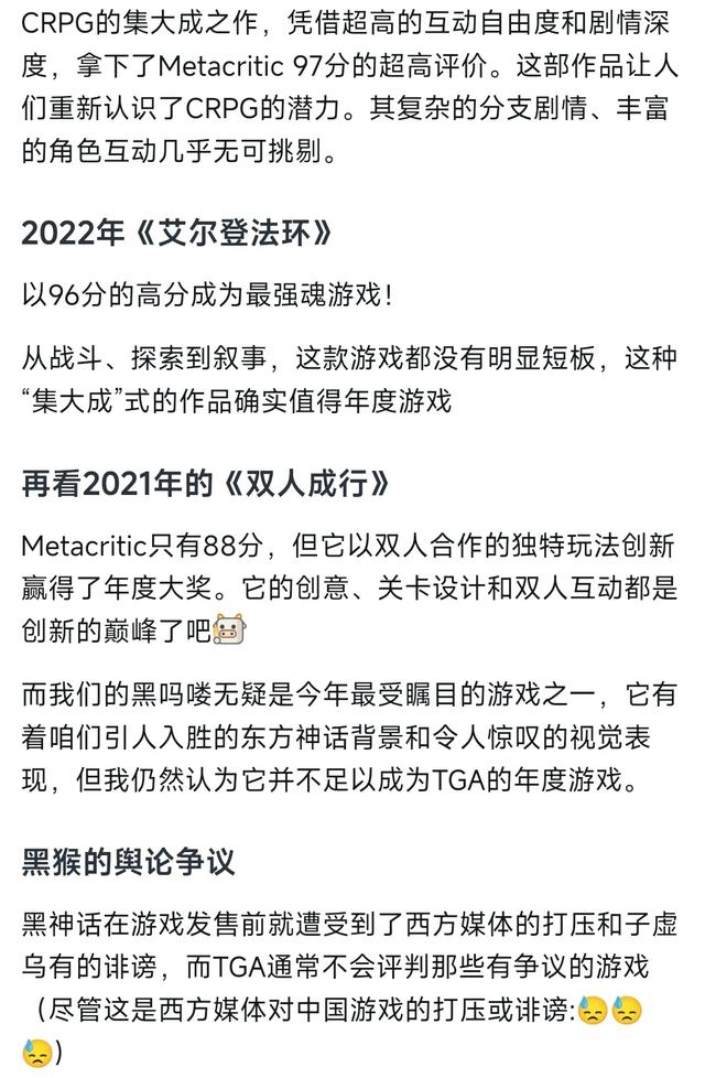哪怕说,前几年的年度最佳都比黑悟空好,但今年的话截止到目前我仍未发现能够超越黑悟空的游戏,真要说年度最佳不是黑猴,除非后面突然发布一个特别优秀的游戏。否则很难说