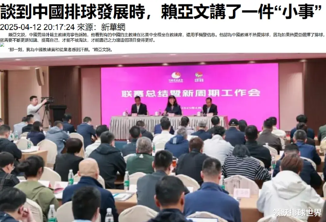 这番话犹如一记当头棒喝,赖亚文也坦言:“那一刻,我真的为中国排球教练员和从业者感到汗颜。”在她看来,这不仅仅是行为不当,更暴露出一些人对职业精神的漠视、对排球发展的停滞,而新华社更是严肃的报道了这件所谓的小事。