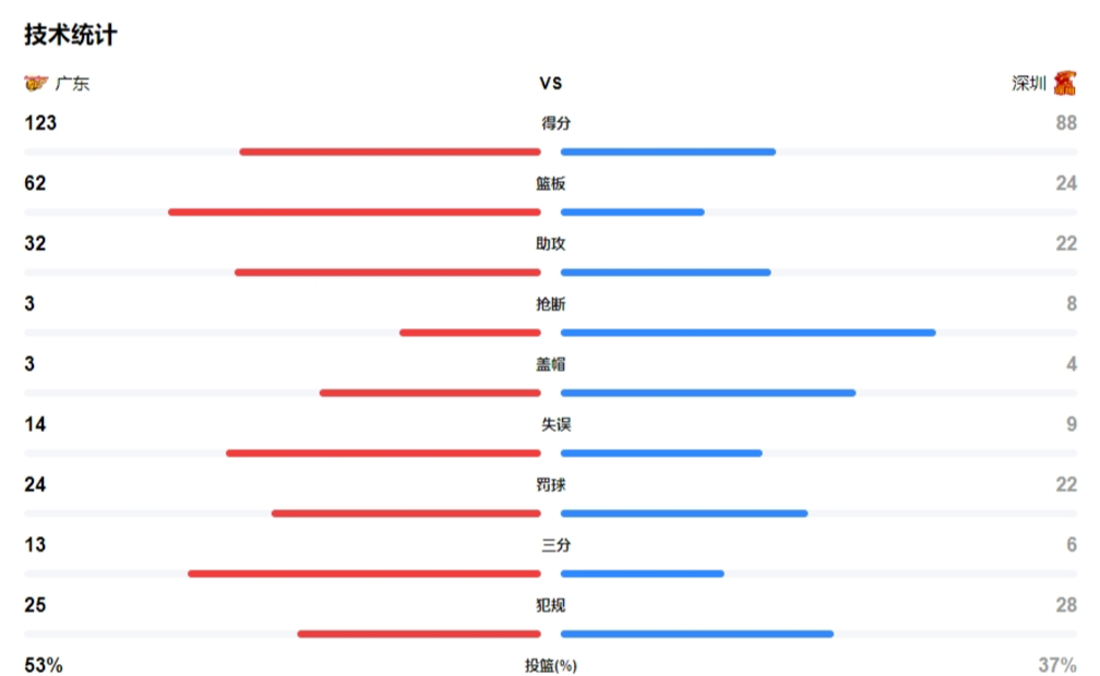全场比赛,广东赢了深圳38个篮板球,这样的差距,足以让任何对手感到绝望!