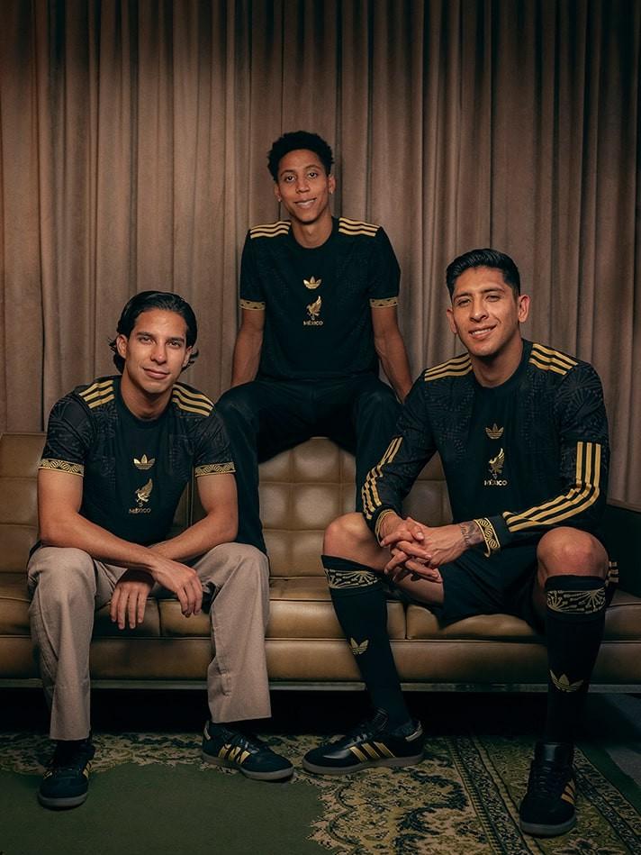 阿迪达斯这次真是下了功夫,不愧是大牌子,设计的球衣就是与众不同,黑色配金色,看着就高级,一点都不像以前那种土里土气的球衣。这种配色让人想起了电影里的那些大明星,穿上走红毯都不违和。不过话说回来,这种颜色踢起球来会不会太容易脏啊,黑色还好说,那金色的部分估计踢一场就得洗一次。不过球员们应该不在乎这个,反正有人给他们洗。这球衣设计的真是别出心裁,把墨西哥的电影元素都融进去了,看来设计师是做足了功课。怪不得能设计出这么有特色的球衣,原来是从电影里取的灵感啊。这倒是个新鲜的点子,不知道别的国家队会不会也学着点,来个电影主题的球衣。想象一下,要是中国队也来一件这样的,会不会把功夫元素加进去,那画面太美不敢想象。