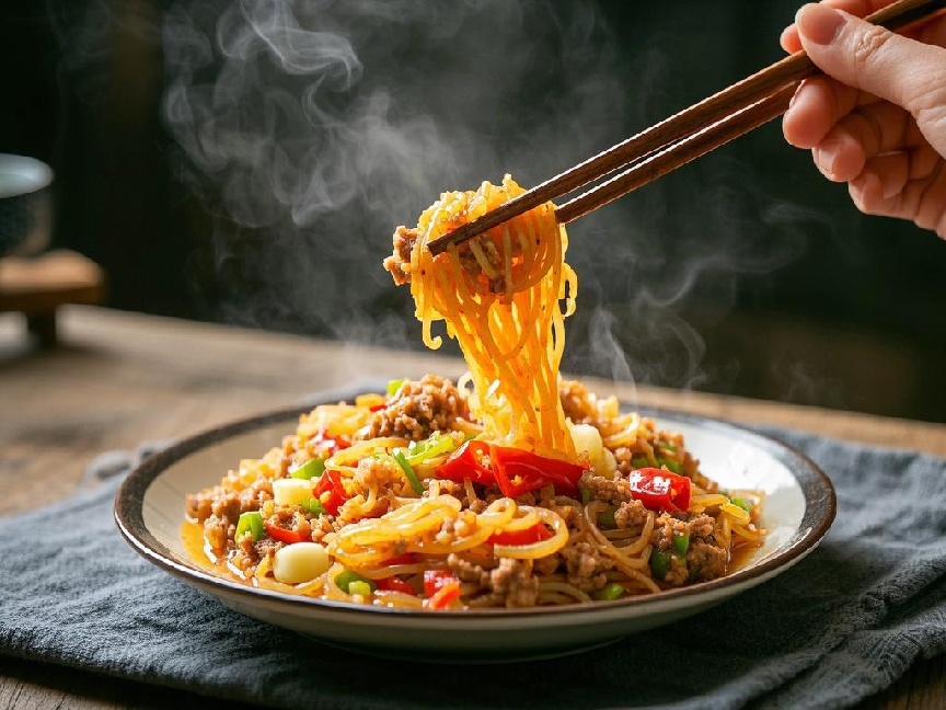 《日本不思议》节目专题:“中国人居然吃蚂蚁上树!”镜头对准肉末粉丝,字幕打出“昆虫料理实拍”。
