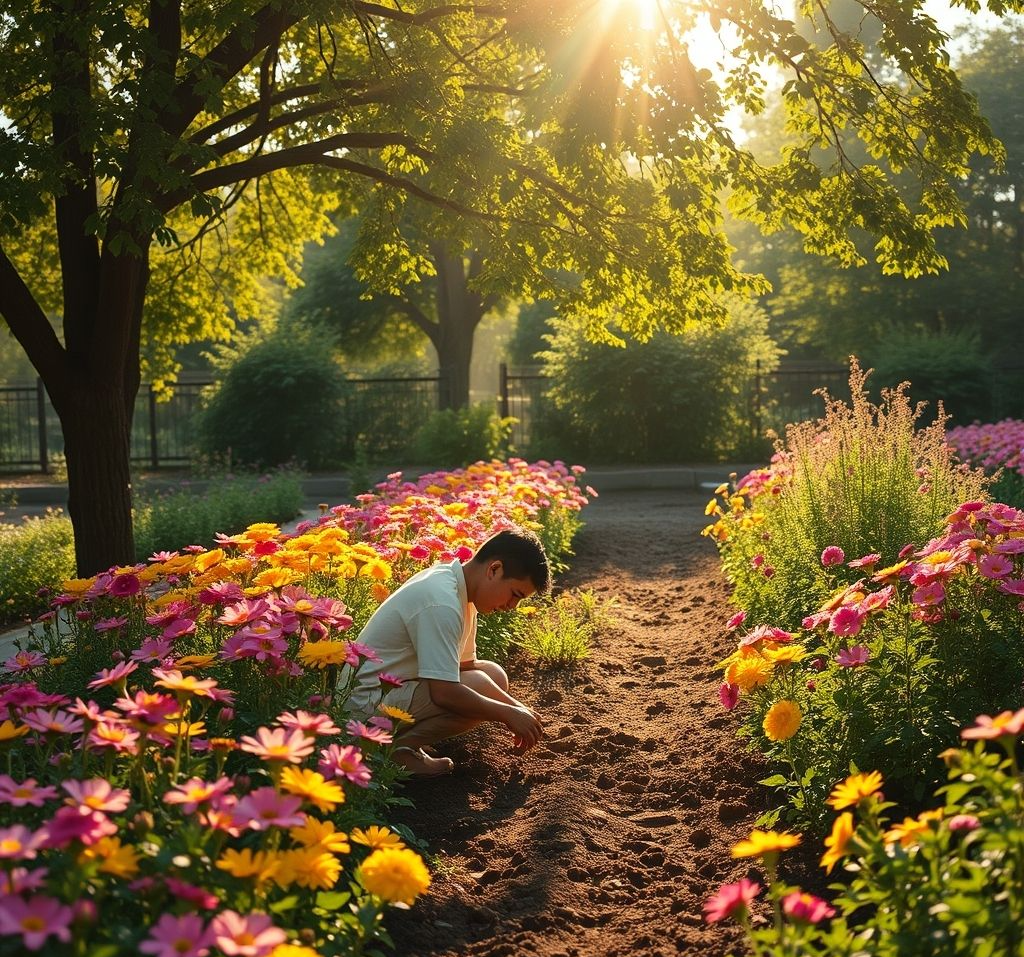 这世上没有无缘无故的相遇,所有的遇见其实都有因果。所以,我们不应盲目地去追求外在的关系,而应把更多的时间和精力放在自我成长上。不要急着去追一匹马,要把追马的时间用来种草,在孤独中自省、低谷时自修、迷茫中自渡,等到春暖花开时,就会有一批骏马供你挑选。在这个自我提升的过程中,就像这张图片展示的,一个人在宁静的花园中专注地播种、培育,看似孤独,实则在为未来的美好积蓄力量。