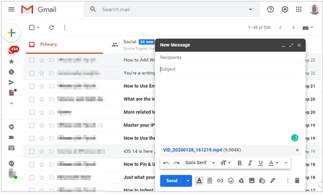 方法 6. 如何使用电子邮件将计算机上的视频放到手机上最后,您还可以通过电子邮件将视频从 PC 发送到Android 。如果您无法使用其他方法将视频从PC传输到Android ,您可以尝试这种方式。请注意,大多数电子邮件供应商将附件的大小限制为 25 MB,例如 Gmail。如果您的单个视频文件大于此值,则无法将其从计算机通过电子邮件发送到Android 。