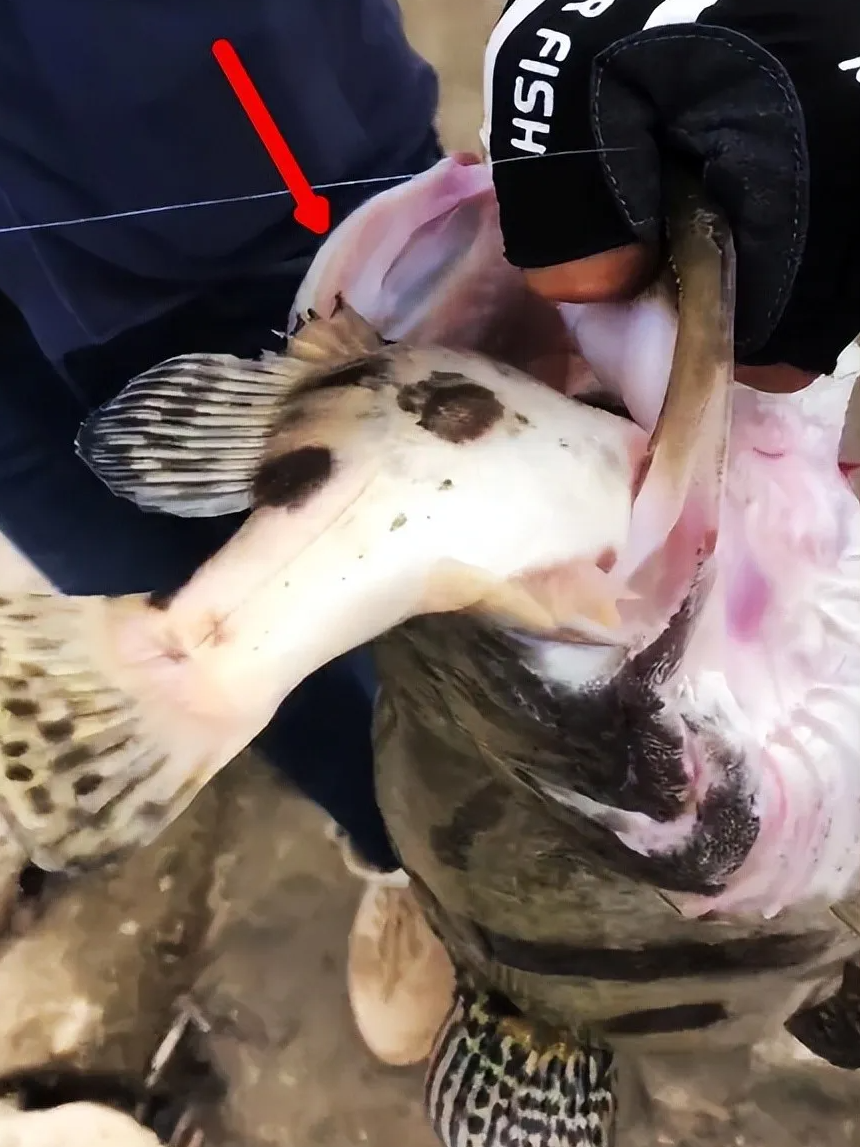 在钓友费了好大的劲才把鱼拉上来之后,发现竟然是一大一小两条鳜鱼,而那条小鳜鱼都快被大鳜鱼吞到肚子里去了。钓友猜测是小鳜鱼先咬了钩,这时候被一条大鳜鱼看到了,然后就一口把小鳜鱼给咬住,想把它吞下去。可这小鳜鱼也不算小,大鳜鱼吞又吞不下去,吐又吐不出来,就这么卡在那里了。反正不管怎么样,这两条鳜鱼最后都被钓了上来。