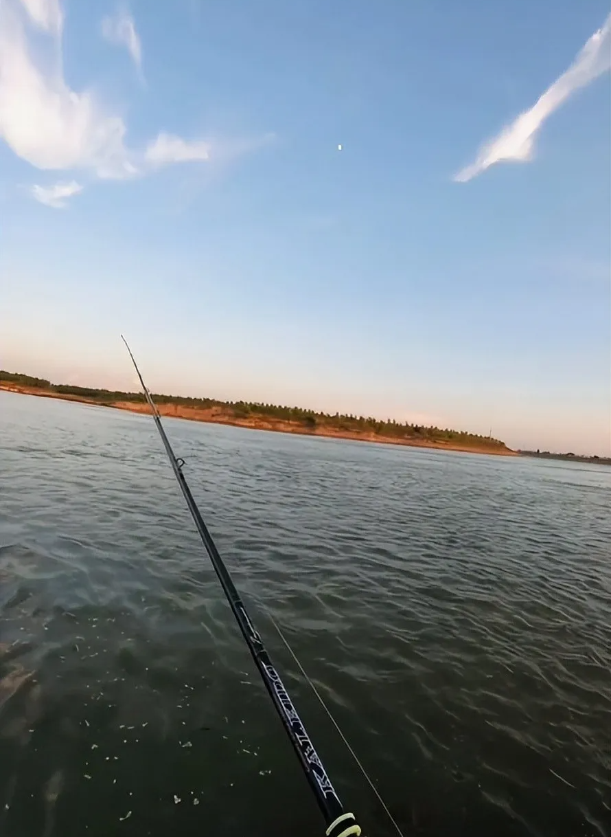 当时钓友正在收线,突然就觉得线被什么东西给卡住了。他心想这下糟了,估计是鱼钩挂底了吧?可谁能想到就在下一秒,鱼线传来一股很大的拉力,让他完全愣住了。他很奇怪明明上钩的是条小鱼,怎么会有这么大的拉力呢?不过他毕竟是位垂钓经验丰富的老钓友,他很快就反应过来了,肯定又有大鱼咬钩了,于是他就开始准备遛鱼。