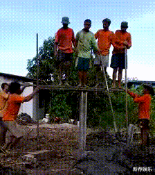 印度人建房子的时候是这样打的地基!几个人现在一块木板上,一起蹦蹦,这时候就差来点音乐了,要不然都快舞上了,哈哈哈……种族的优越就是这么的让人羡慕,就是在干活的时候也能不自觉的体现出来,不过他们打地基的技术属实牛批!