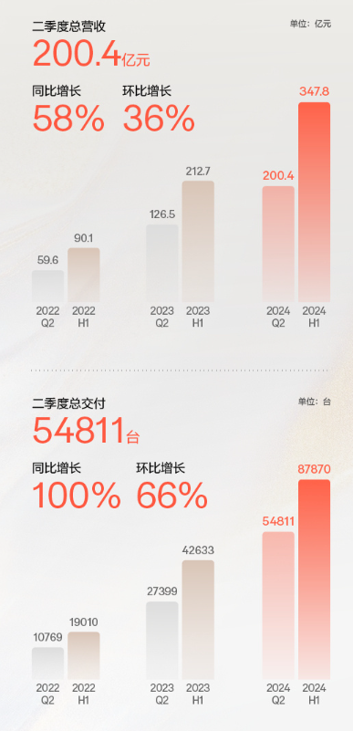 Q2整车销售收入超134亿元,交付量为54811辆,较去年同期翻番