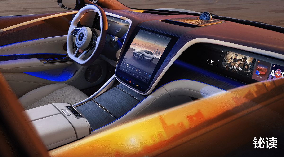内饰设计则完美诠释了"新中式豪华"理念。双环抱座舱布局传承中国传统建筑对称美学,23个丹拿铂金证据系列Hi-End级扬声器带来殿堂级听觉享受。特别设计的中轴线"丹拿星旋"高音单元,在车辆启动时会旋转上升,寓意"旭日东升,时来运转",将东方文化意境与现代科技完美融合。
