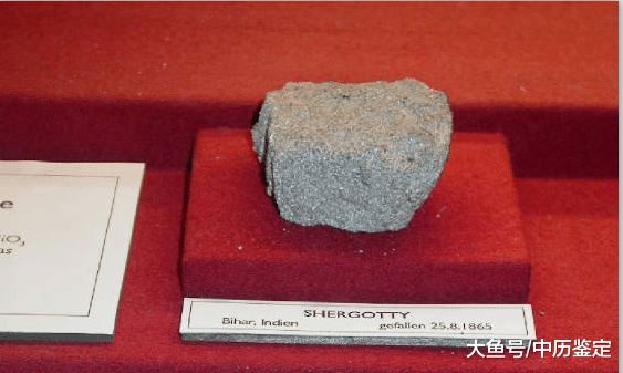 今天要介绍的名为:Shergotty的火星玄武岩陨石,是最早经确认来自火星的陨石之一,它是1865年坠落于印度的目击陨石,总重量在5公斤,虽然它19世纪就来到地球,但是关于它来自火星的身份,一直到1976年美国的海盗号对火星岩石分析后,才确认了它的身份。而在这之前的100多年里,人们只是发现它的岩石矿物学特征不同于其他的无球粒陨石,只知它来自地外行星,而无法将它归类于某种陨石类型。目前此陨石部份样品在英国自然历史博物馆收藏。