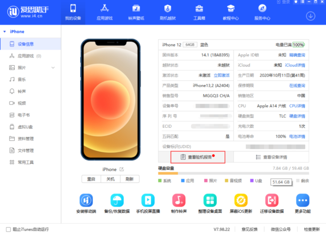 首先当你手机连接爱思助手的时候,爱思助手会读取硬盘内部所存储的关键部件的序列号(比如摄像头电池之类的关键部件),然后再来检测一下手机上安装的这些关键部件的序列号,如果两者一致,那么爱思助手就会判定这个手机没有维修过,也就是爱思全绿。