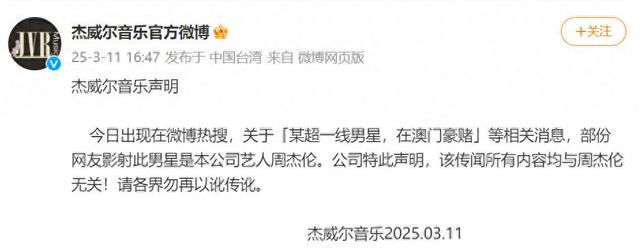 刚刚,周杰伦公司紧急声明.2025-03-11 17:22·青岛新闻网