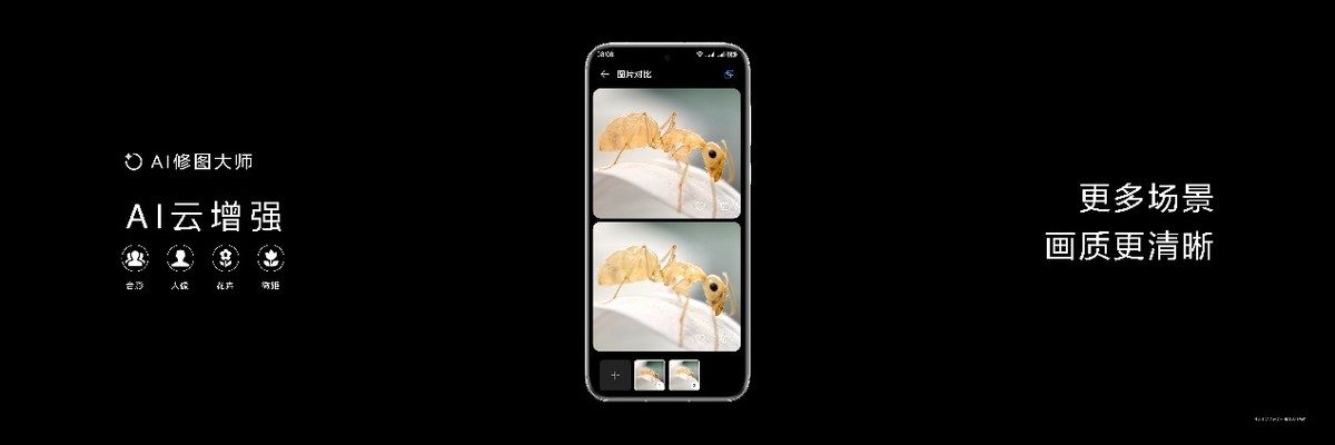 AI扩图功能则为摄影创作提供了更多的可能性。它可以一键扩展照片视野,智能推荐扩图比例,并自然地补全照片背景。这一功能不仅能够拯救那些构图不佳的“废片”,还能创造出趣味十足的创意大片,让你的照片更具艺术感和想象力。AI云增强则能对照片的画质进行提升,使其细节丰富、色彩更浓郁。
