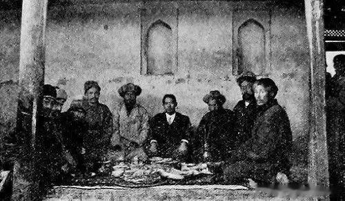 自右起分别为内藤湖南、富冈铁斋、罗振玉、犬养木堂、长尾雨山