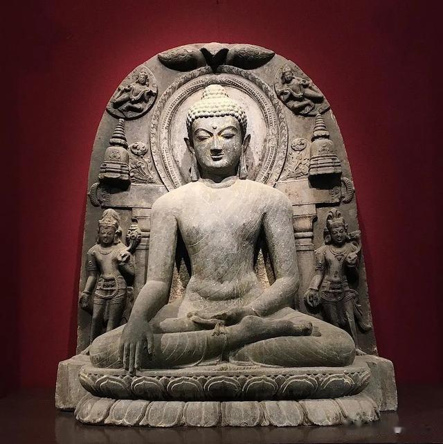 释迦降魔成道坐像属波罗王朝(公元8—12世纪)时期,高146厘米,宽123厘米,座宽52厘米,出土于印度佛陀迦耶,为日本大谷光瑞探险队于1902年11月至1903年1月在印度、巴基斯坦、阿富汗等地进行的第一次探险活动所得,拥有很高的学术价值。