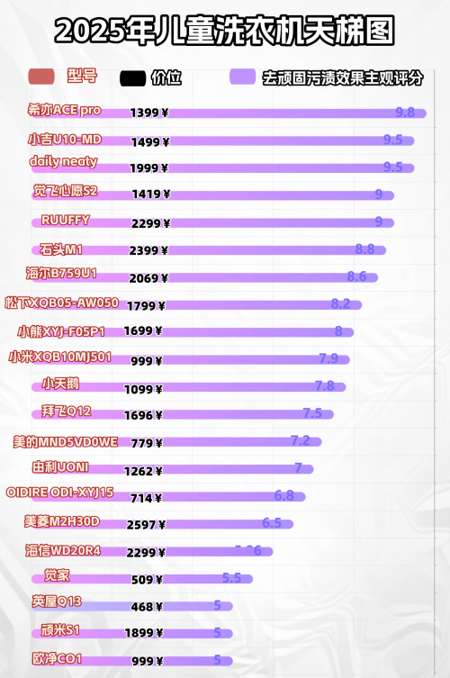宝妈宝爸们,当小天使降临,生活里处处都要为宝宝的健康着想,洗衣服这件小事也变得意义非凡。宝宝肌肤娇嫩,普通洗衣机易藏污纳垢,交叉污染风险高,儿童洗衣机就成了呵护宝宝衣物的关键装备。可面对市场上琳琅满目的品牌,怎么选才能既经济又实用?别担心,今天就为大家呈上2025年性价比超高的十款儿童洗衣机品牌排行榜,涵盖洗净力强、杀菌出色、操作便捷等各方面优势产品,助你轻松挑到适合自家宝贝的洗衣好帮手,快一起来看看吧!