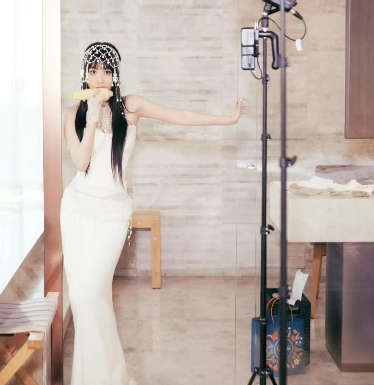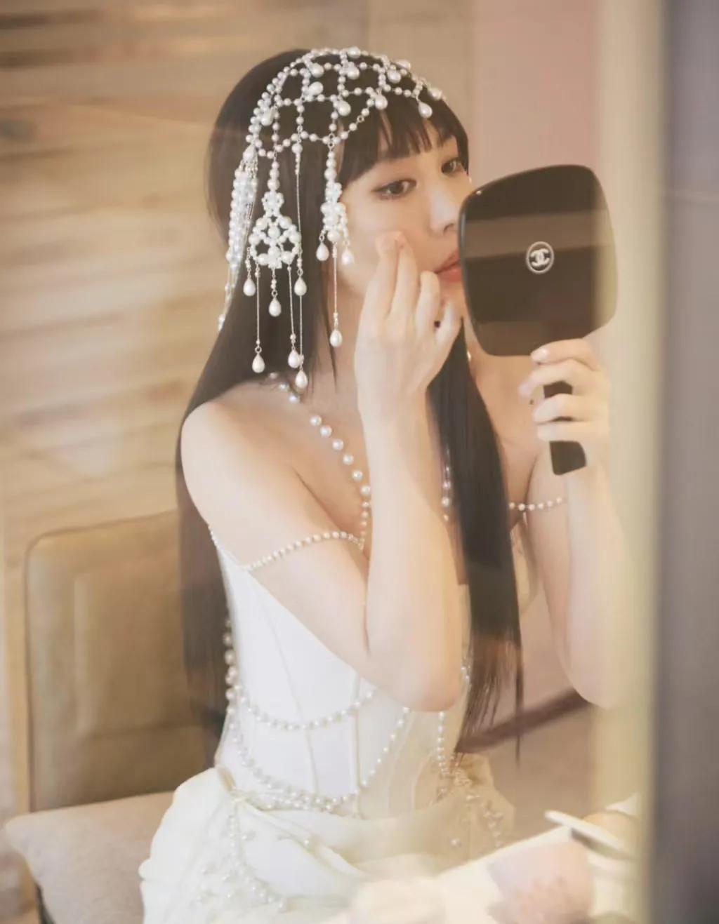 裙摆摇曳间,万千珠光闪烁,仿佛月光倾泻而下,将她包裹在一层梦幻的光晕之中。珍珠的温润光泽与她白皙的肌肤相得益彰,更衬托出她优雅高贵的气质。精致的头饰点缀在如瀑的秀发间,更添一丝灵动与妩媚。举手投足间,尽显女性的柔美与魅力,令人不禁为之倾倒。