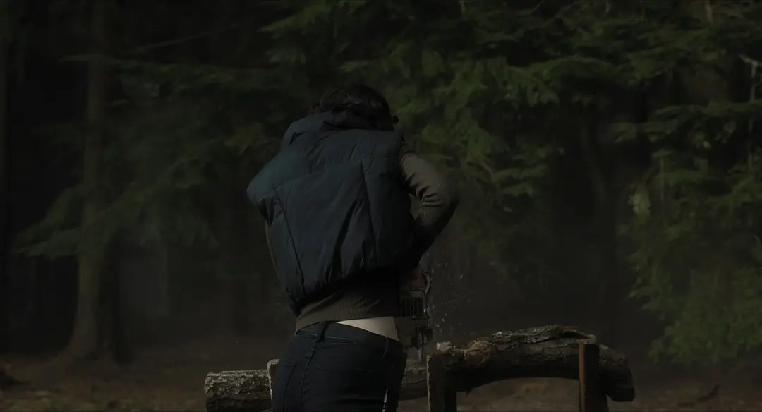 在两人逐渐习惯这种生活时,因为男主用望远镜看到了对面正在锯木头的女主,被对方的曼妙身影吸引。