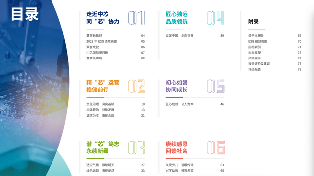 《中芯国际2023年环境、社会及管治(ESG)报告的目录》