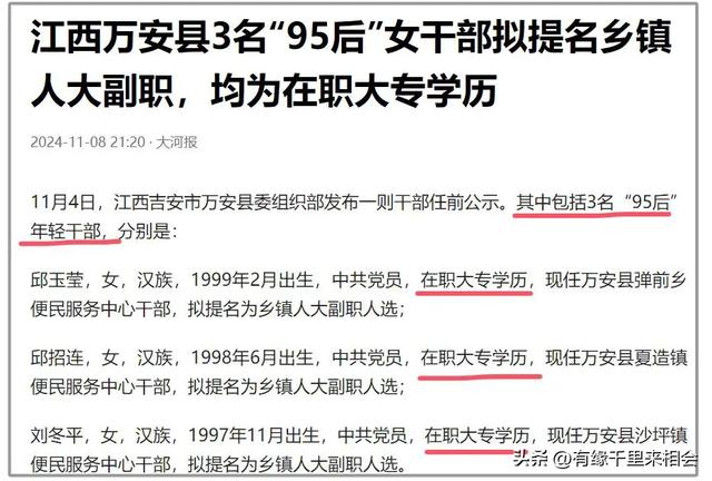 最近,一则关于三名“95后”女干部拟获提拔的消息引起了广泛关注,尤其让人瞩目的是,她们的学历均为在职大专。此消息一经披露,便在网络上引发了激烈讨论,很多网友对这种情况表示疑虑,究竟是什么原因导致如此年轻的干部能在职场中脱颖而出?官方的回应又是怎样的?让我们一探究竟。