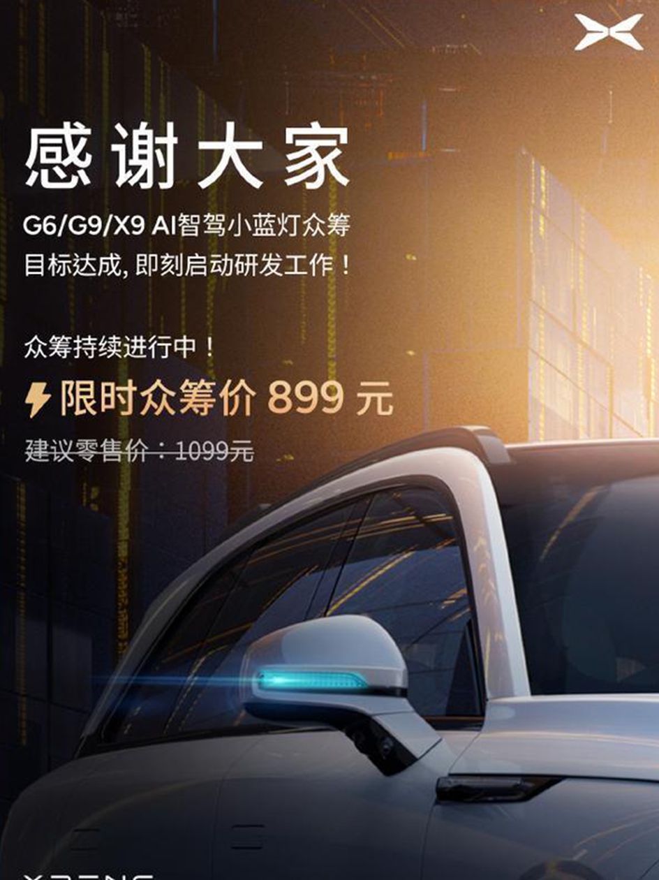 其实啊,这盏蓝灯可不是啥随便装的装饰灯,那是智驾提示灯!亮起来的时候,就表明车子开启了智驾功能。想当初啊,国内也就理想在L9发布之后,才开始在自己的车上装这个灯。不过现在可不一样喽,越来越多的车企都跟上了这趟潮流,开始给自己的车配上这个“小蓝灯”。像去年的极越07、小鹏P7+就已经用上了,我听说今年小米YU7、比亚迪也打算用呢。前几天新G6、G9发布后,小鹏更是给老车主们送福利,让他们能升级用上这个“小蓝灯”,这不,现在众筹都成功了。以后啊,路上这种冒蓝灯的车肯定越来越多。