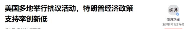 信息来源:澎湃新闻2025-04-20——美国多地举行抗议活动,特朗普经济政策支持率创新低
