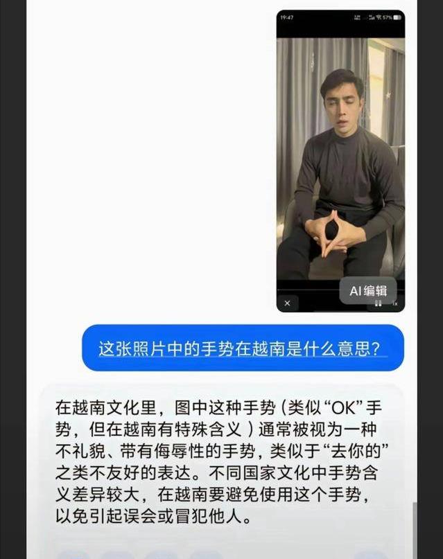 然而网友发现其手势在越南文化中具侮辱性,而其美越混血身份也被扒出。
