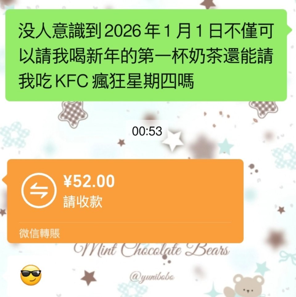没人意识到2026年1月1日不仅可以请我喝新年的第一杯奶茶还能请我吃KFC疯狂星