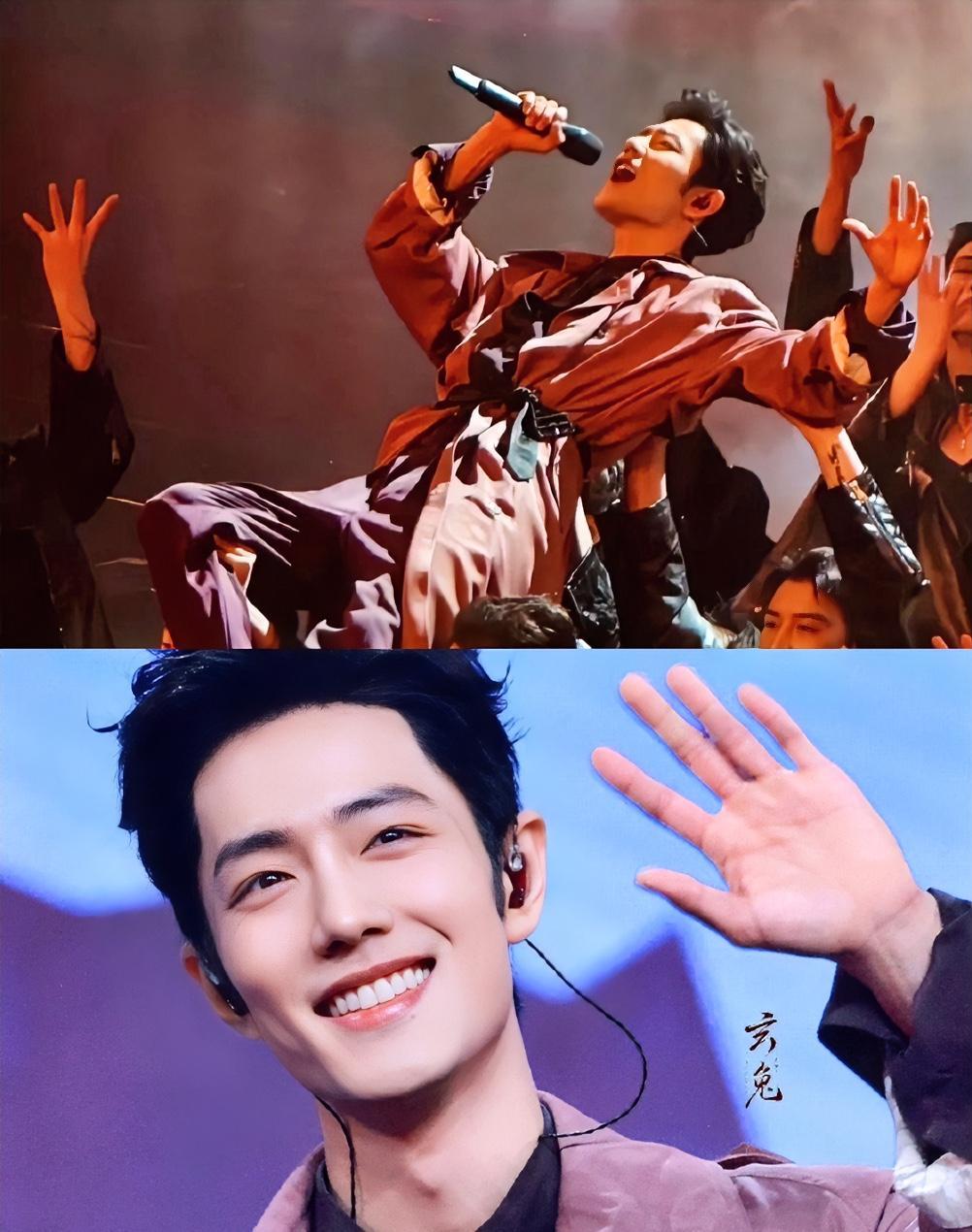 跨年! 跨年晚会的聚光灯突然暗下来,肖战穿着一身紫色西装走上台。 台下粉丝举