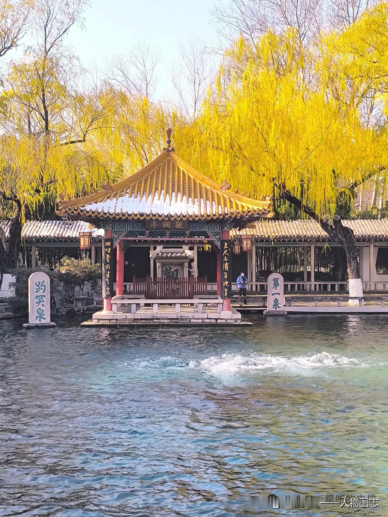 今年秋访趵突泉,水位创高,三股泉眼喷涌若轮,水声如雷,清澈见底,令人震撼。