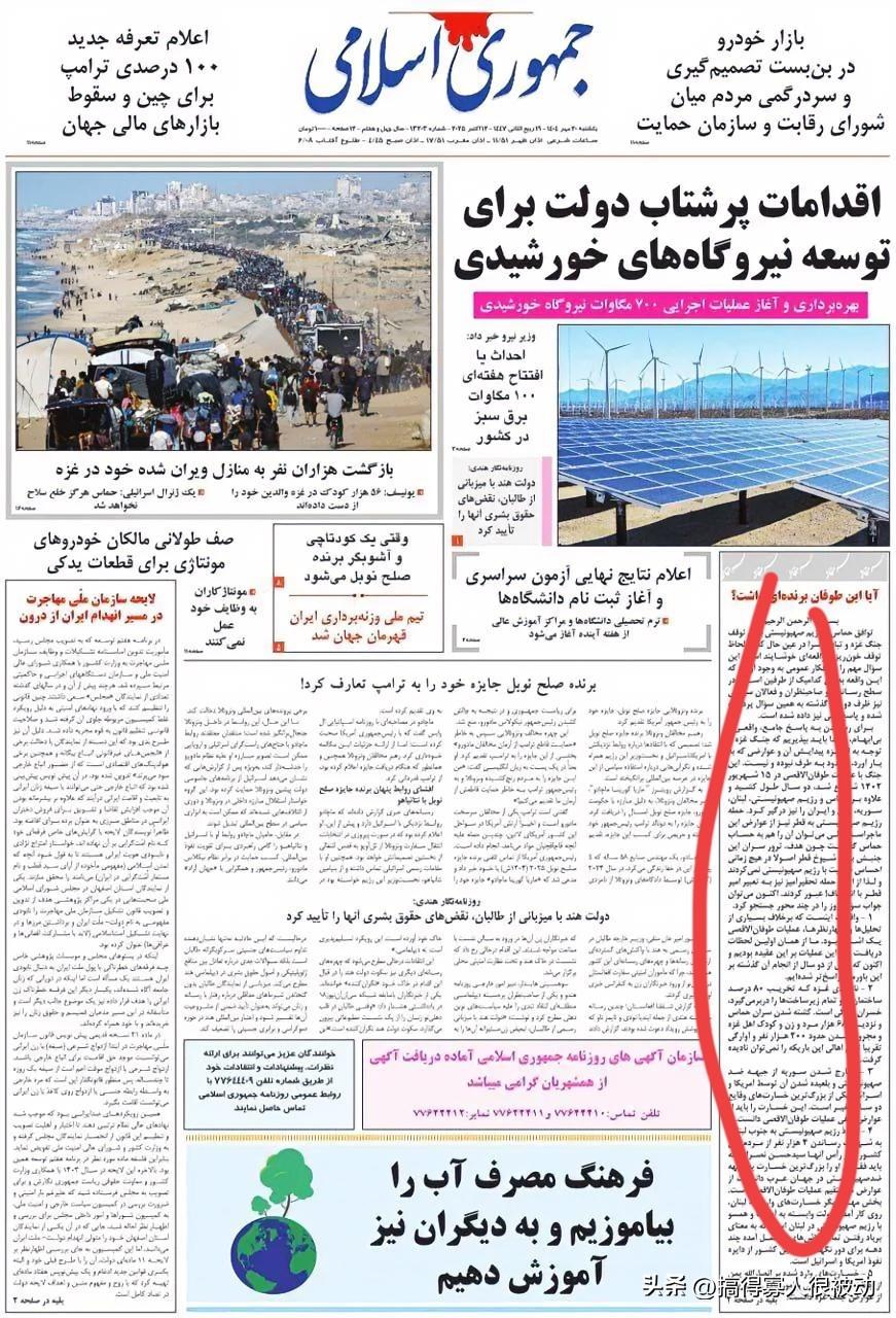 "阿克萨洪水”行动是哈马斯的一次战略错误。波斯官媒在头版头条罕见发表评论员文章,