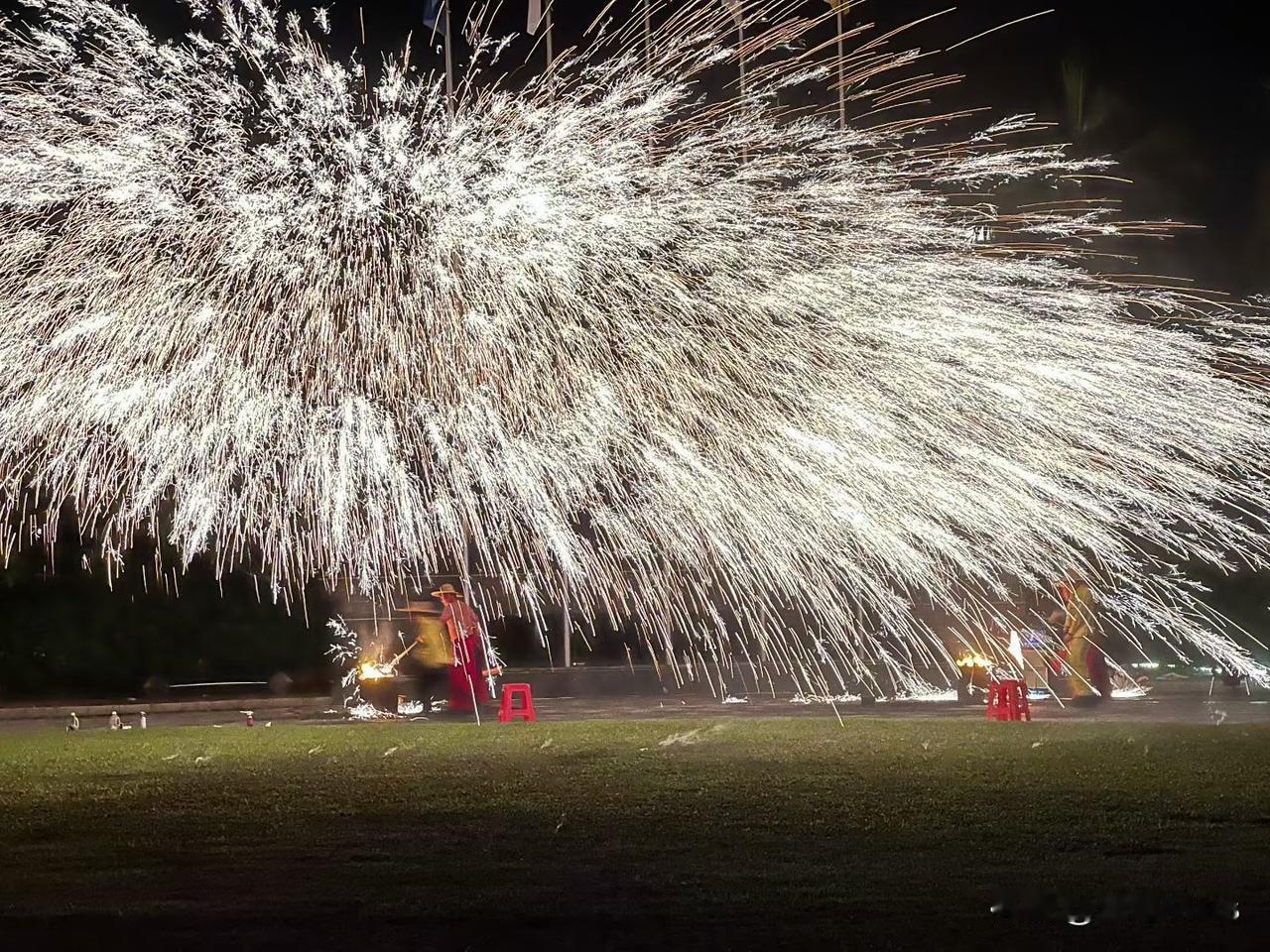 这个国庆,也算是看过打铁花了。 见过烟花,也喜欢打铁花的璀璨
